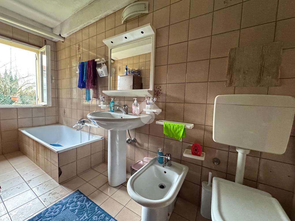 L’abitazione si apre al piano terra su una luminosa zona giorno composta da soggiorno e cucina separata. Completano il piano una spaziosa lavanderia/centrale termica e un bagno finestrato con vasca.