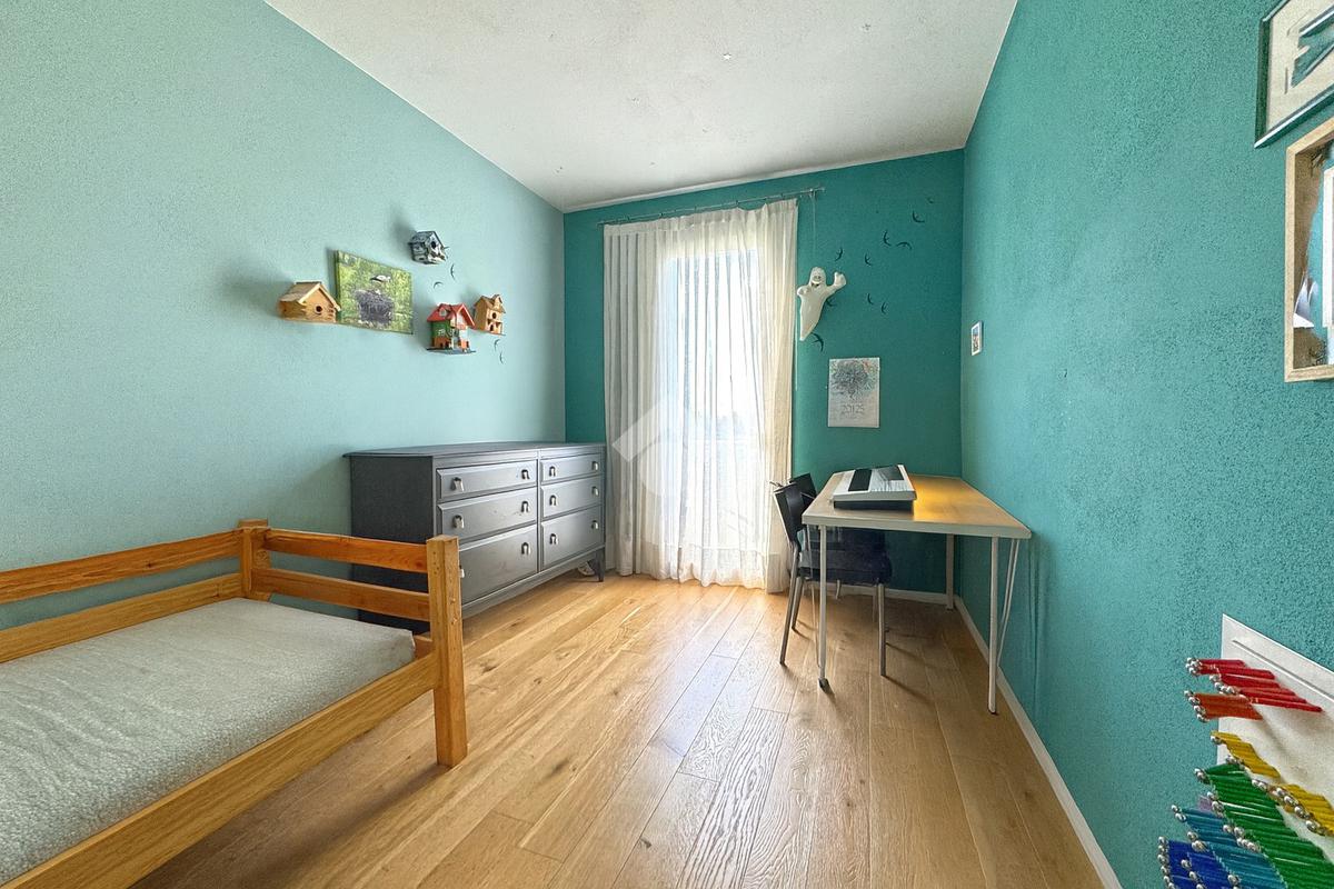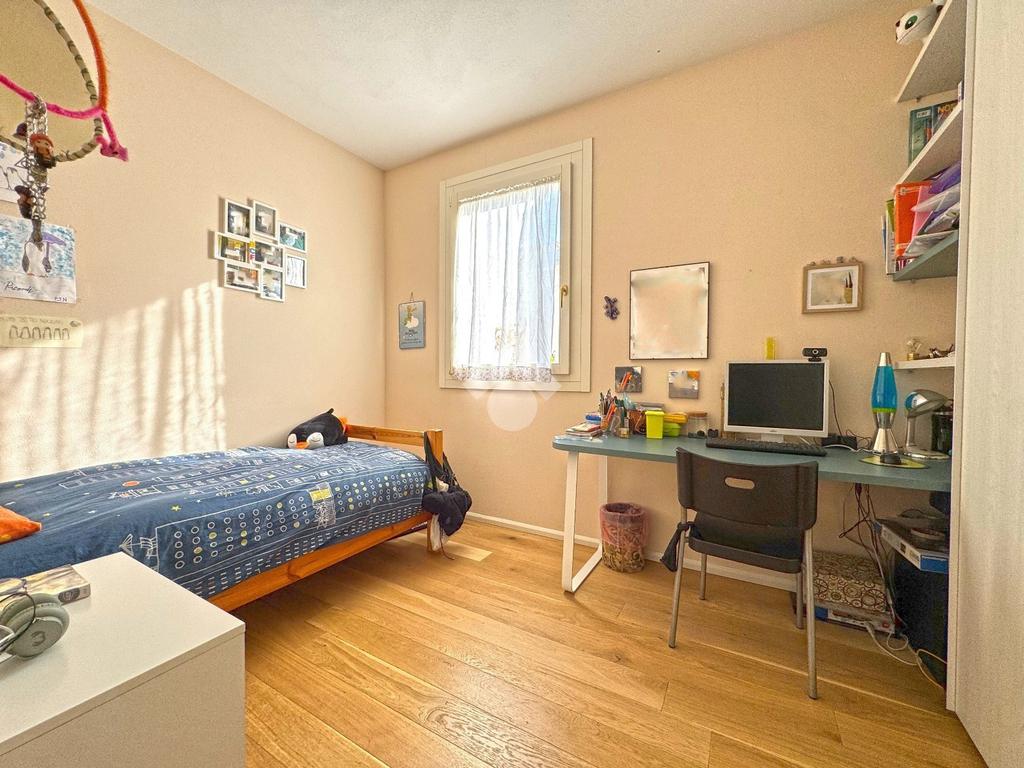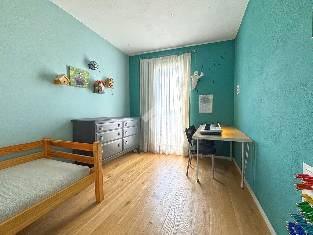 L’immobile dispone di giardino privato su due lati e vanta dotazioni come pannelli solari termici a svuotamento (non richiedono manutenzione periodica), cappotto interno, pavimenti in rovere e finiture in marmorino, assicurando un elevato comfort termico e acustico. Completa la proprietà un garage doppio con basculante sezionale e accesso diretto alla casa, una comodità rara e particolarmente apprezzata.